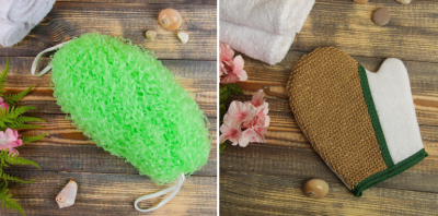 - Если вы предпочитаете более мягкий вариант, выберите мочалку из морской губки или льна. Для более интенсивного массажа подходит мочалка из люфы или пеньки.